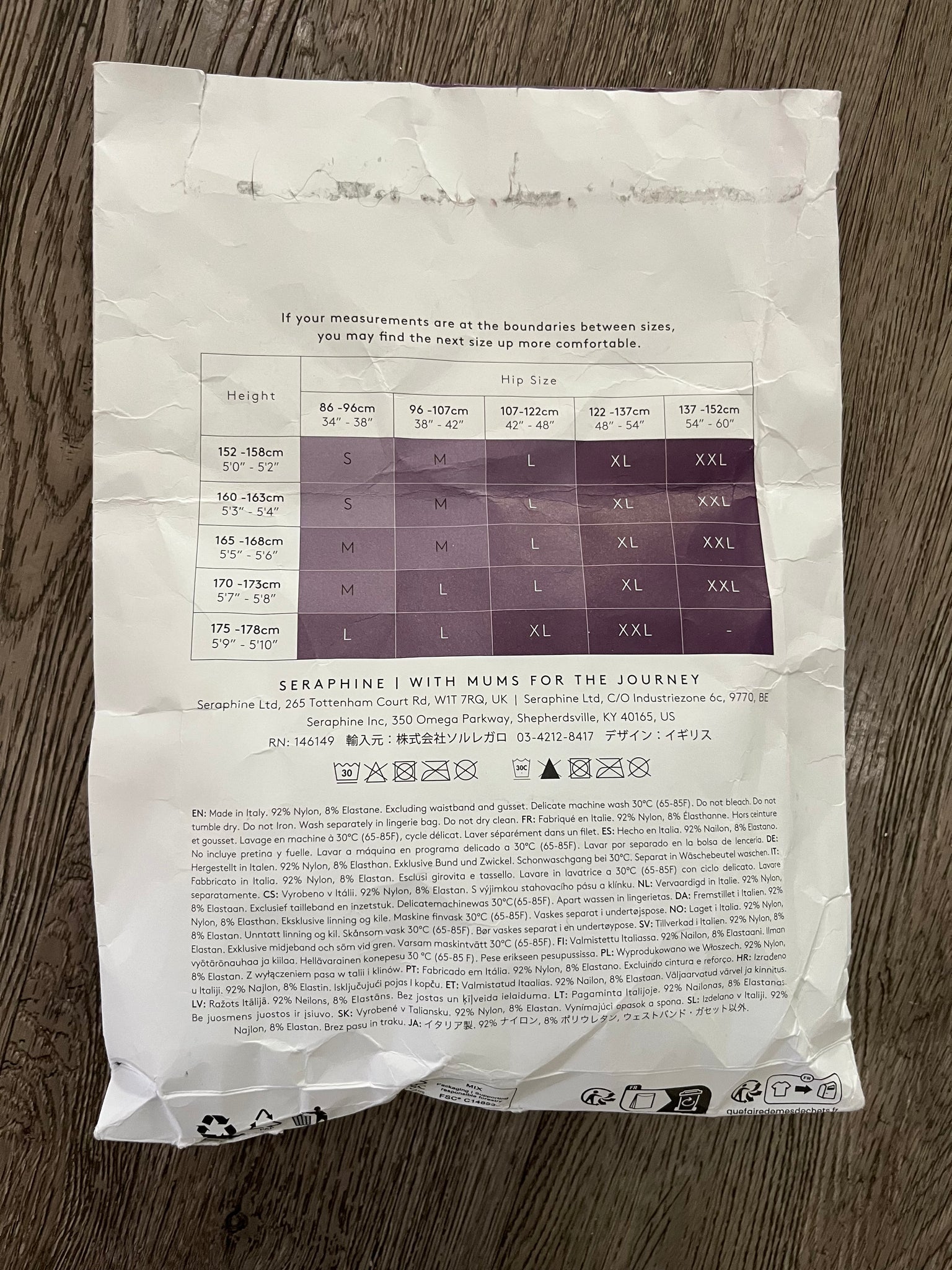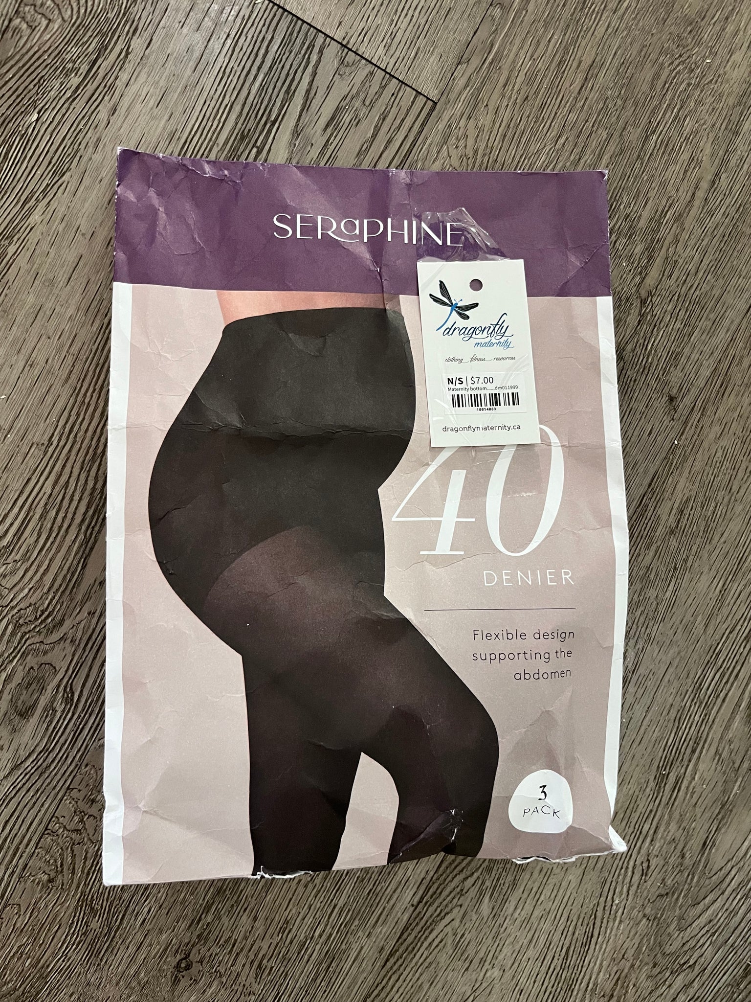 Seraphine maternity tights, black, flexible design to support the abdomen, full enclosed foot, 40 denier, machine washable, nylon / elastane blend. NWT (original retail value: $16) Note: package opened, 2 of 3 pairs remaining.